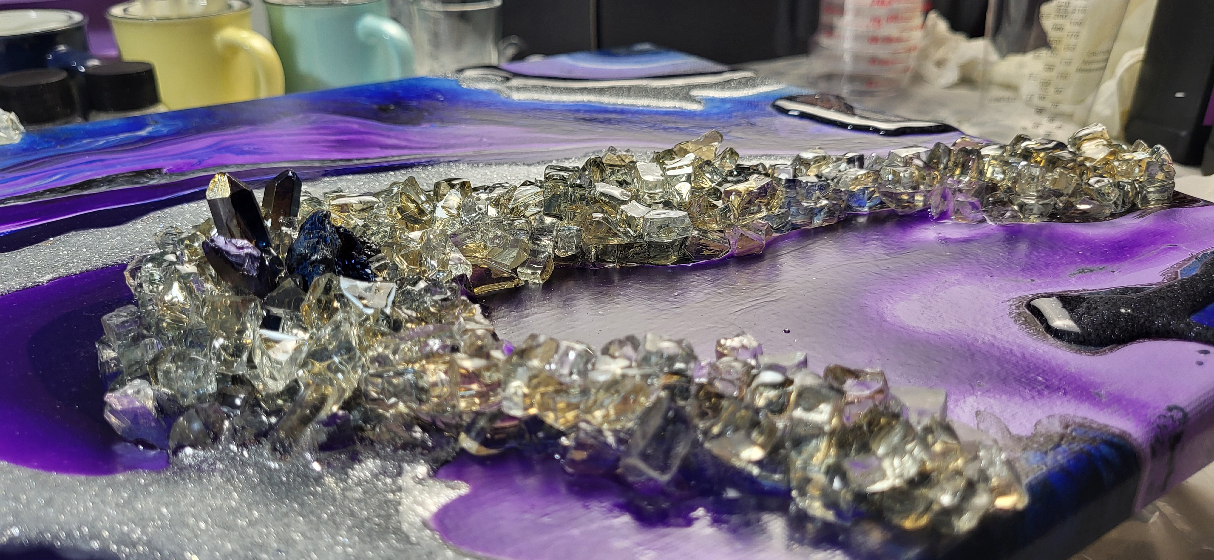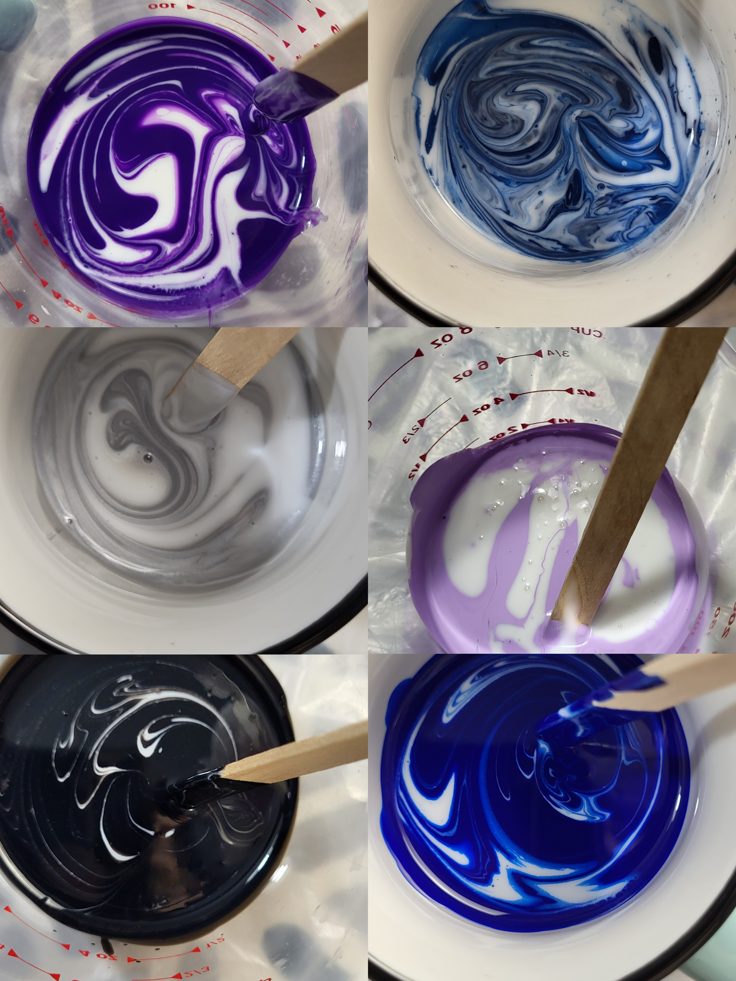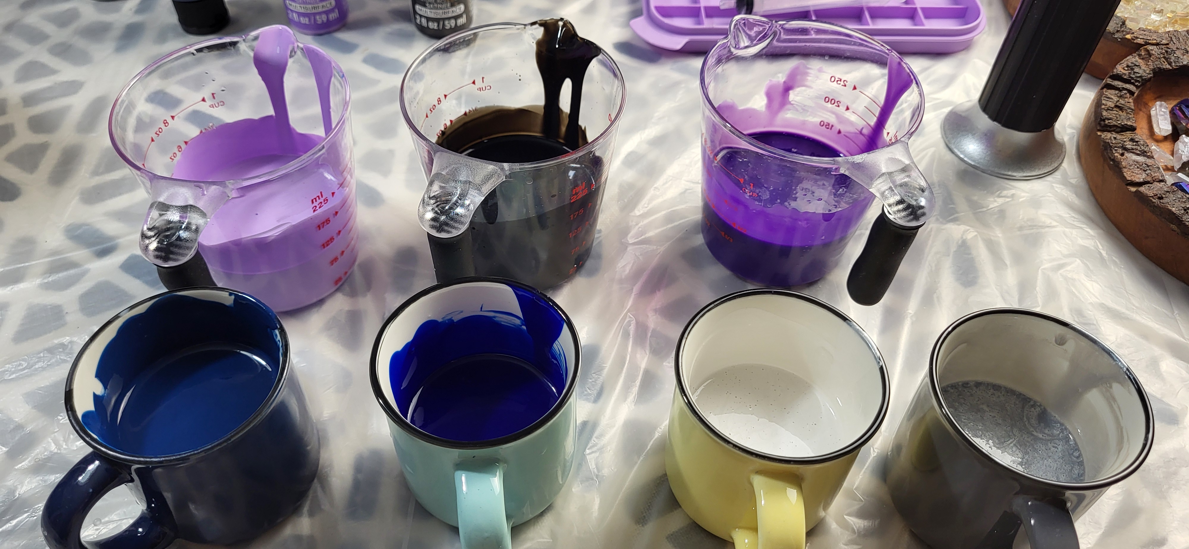 把树脂与颜料调好,一杯杯排开时,
