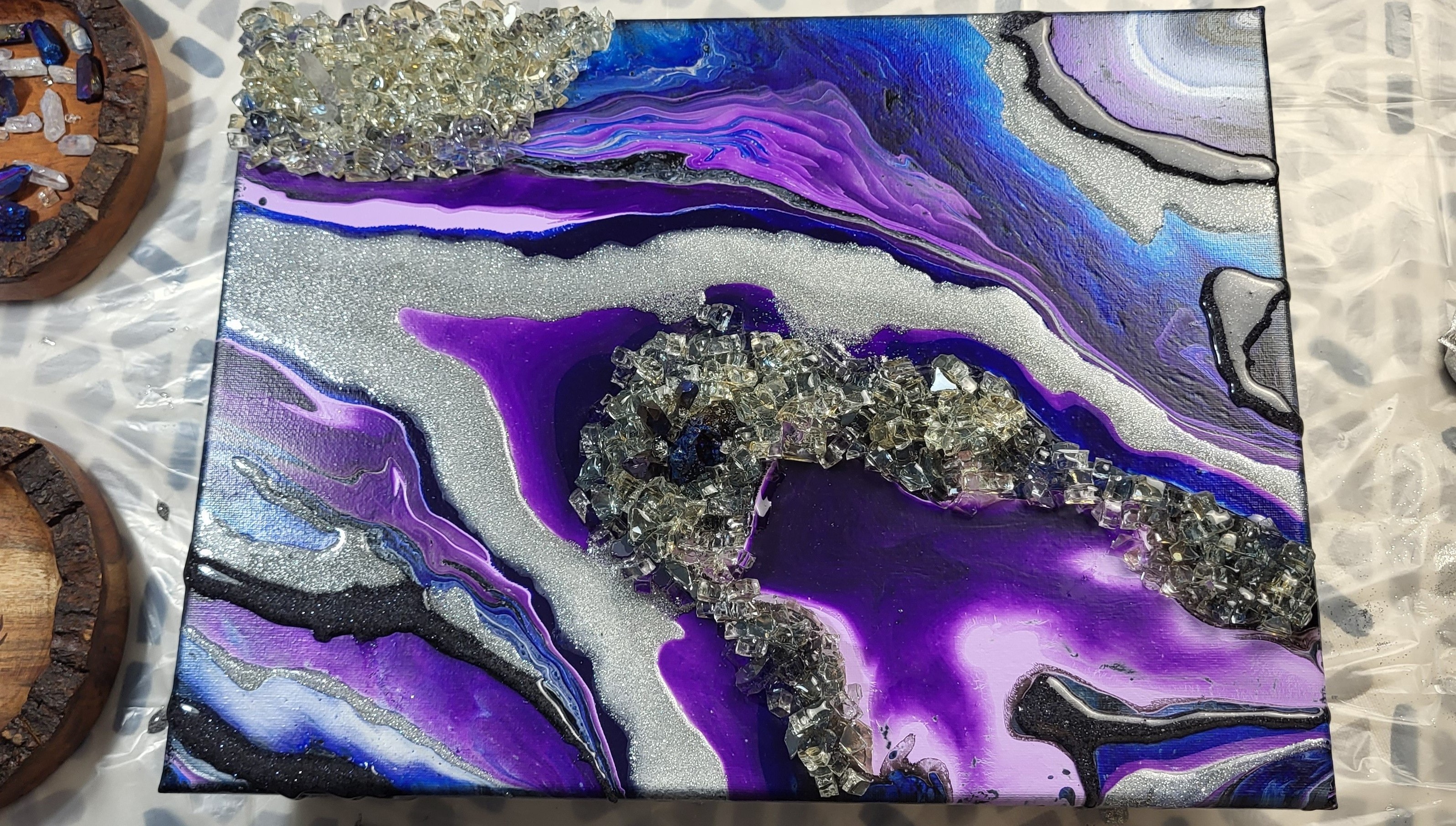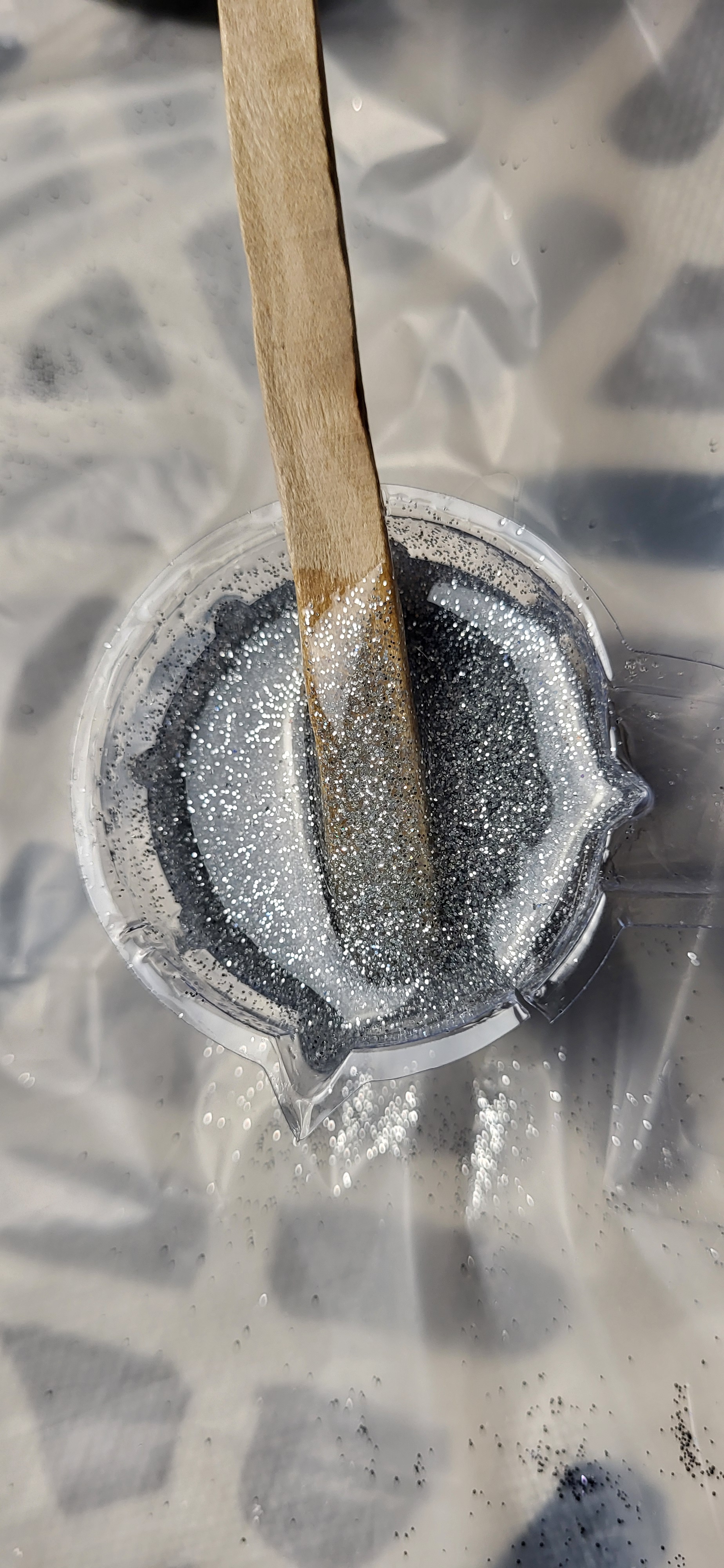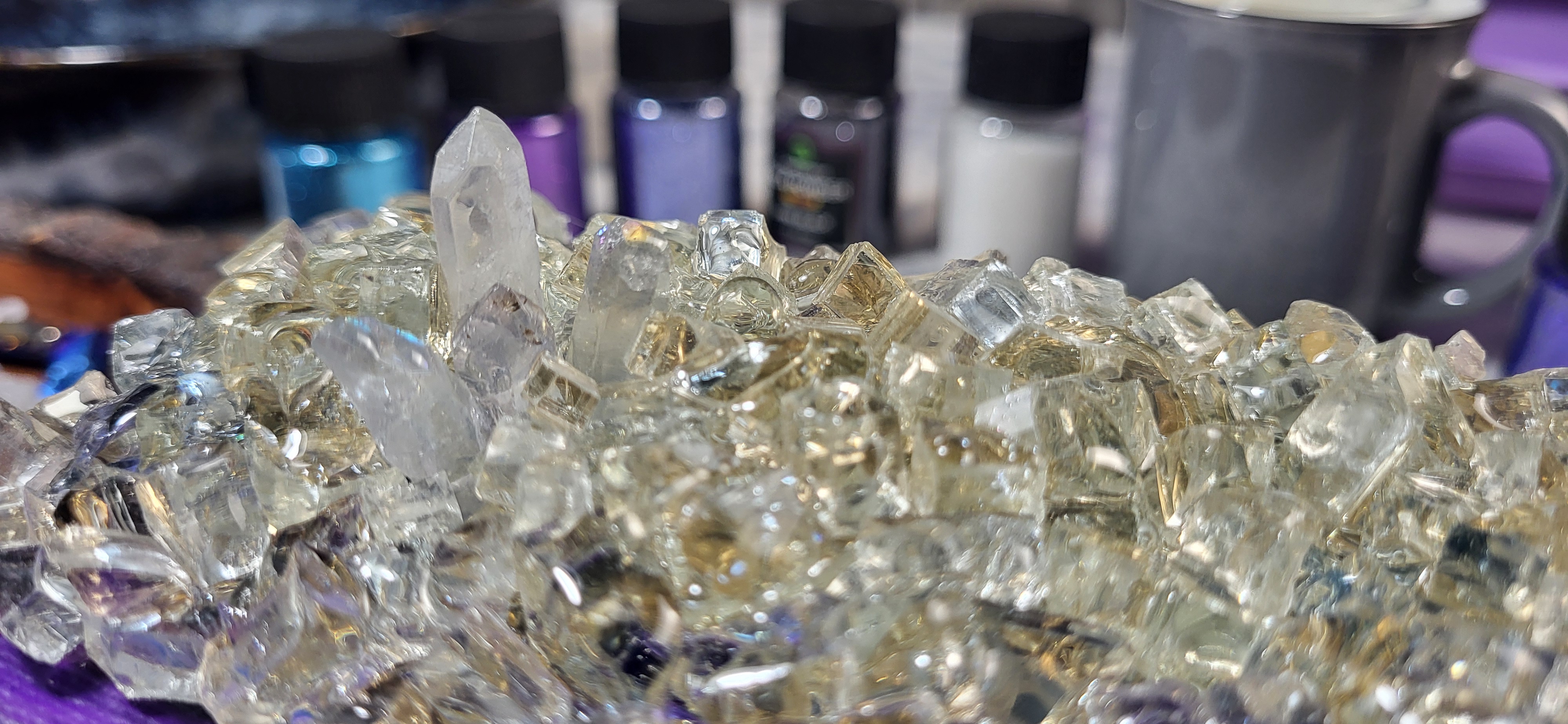 把树脂与颜料调好,一杯杯排开时,
